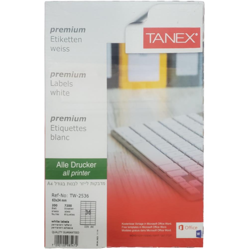 מדבקות לייזר 63X24מ"מ (36 בדף) TANEX