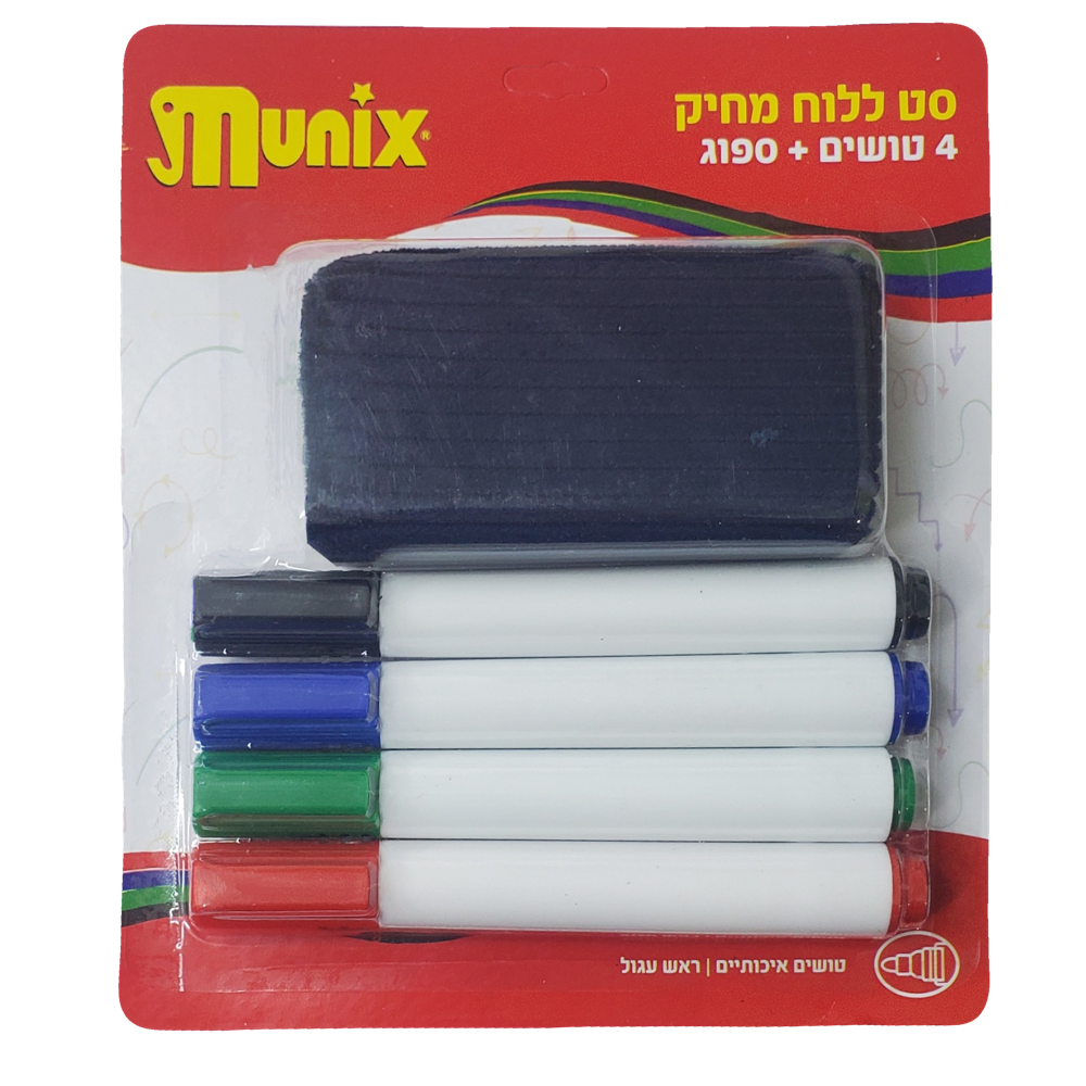 סט ללוח מחיק 4 טוש+ספוג MUNIX